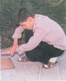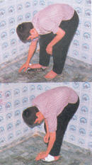 پس از مسح سر، پاي راست را از نوک انگشت تا آخر روي پا (مفصل) با دست راست مسح مي کنيم.